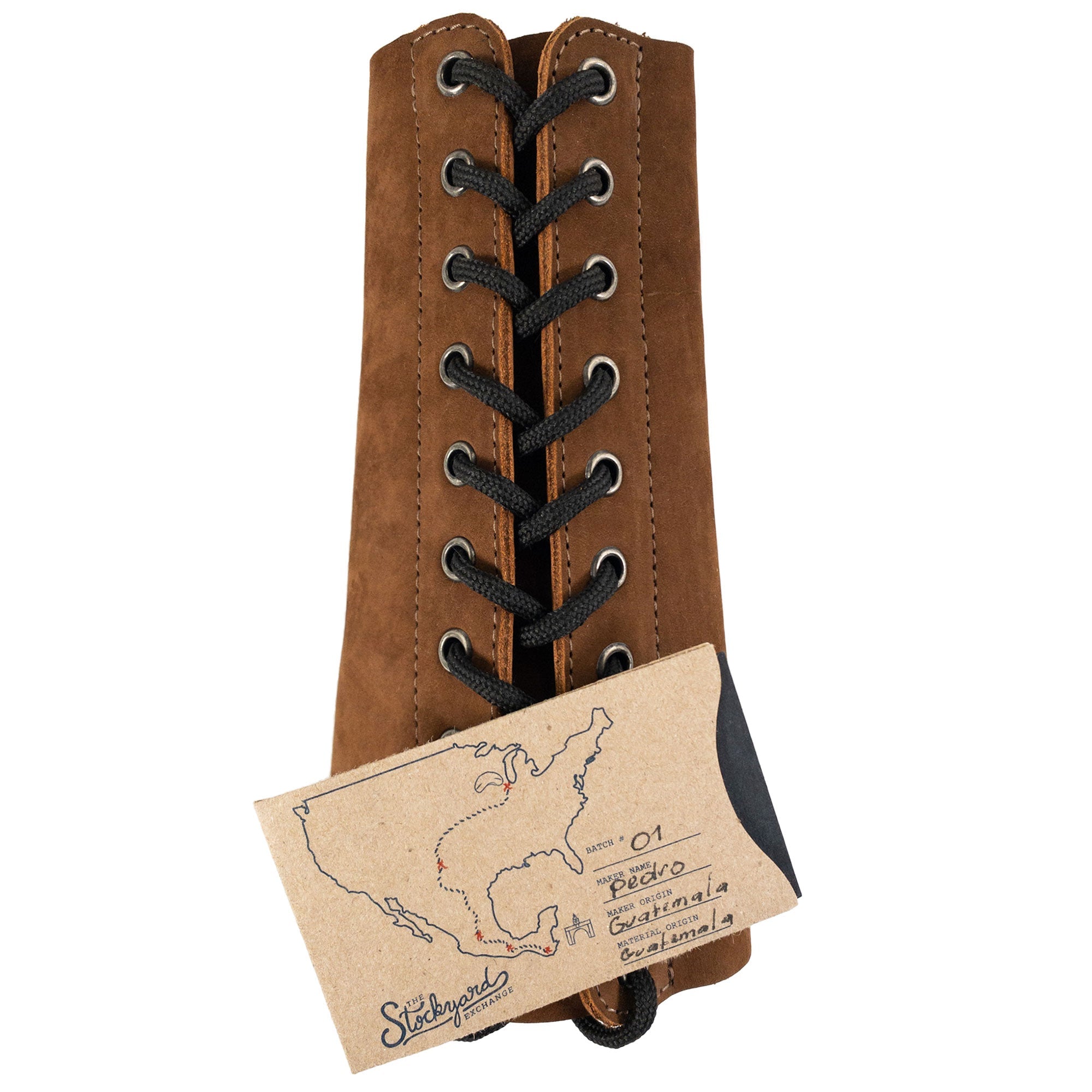 Made from high-quality full grain leather sourced from Petén, Guatemala, this forearm protector will naturally develop a distinct patina over time, making it even more personalized. For those who want to maintain its beauty, simply condition it with mineral oil or beeswax leather conditioner.