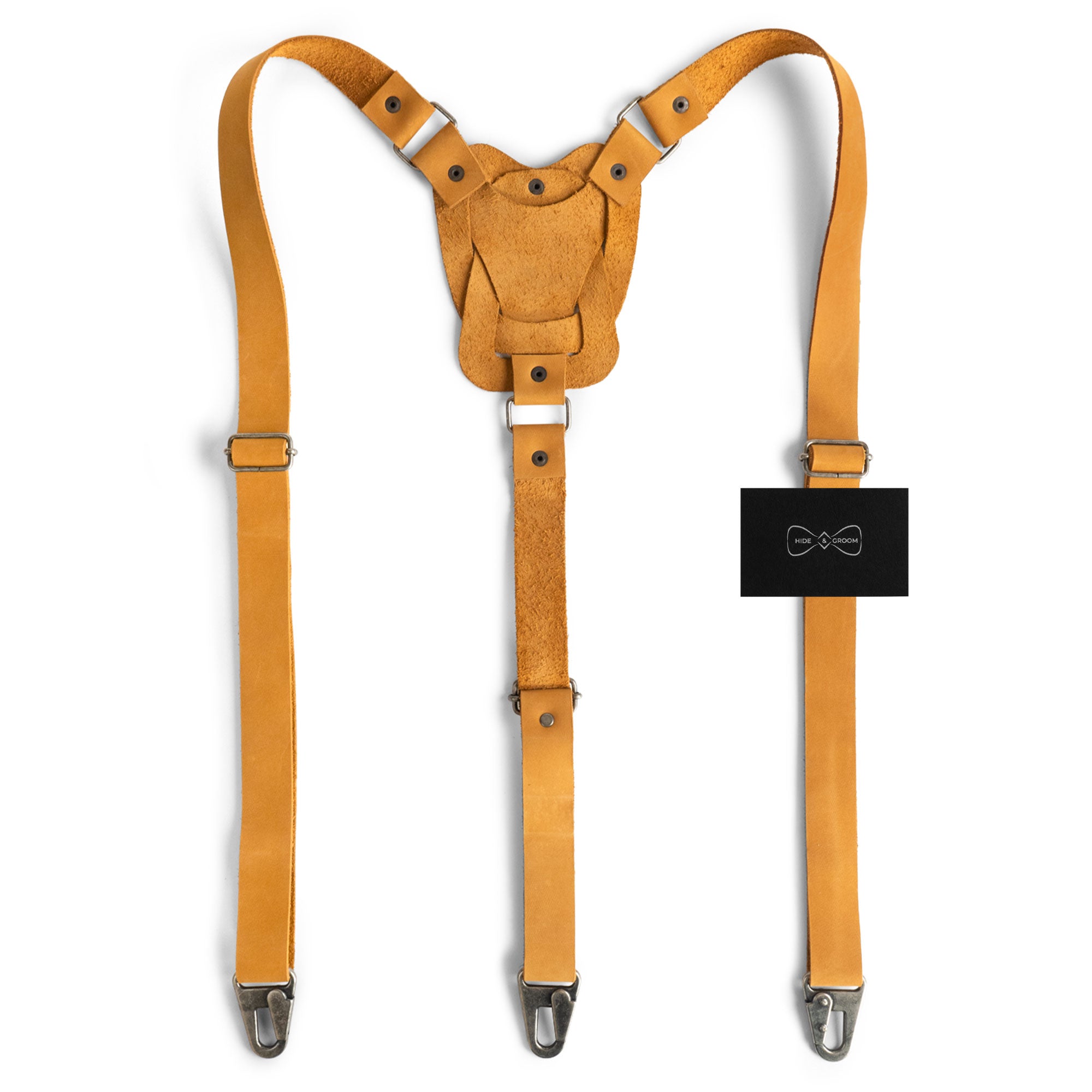 Material selection is crucial to us. Our full grain leather guarantees quality and resilience, allowing these suspenders to withstand daily wear and tear without losing their charm. Perfect for gifting, our rustic suspenders make an exceptional present for friends and loved ones at birthdays, holidays, or special occasions.