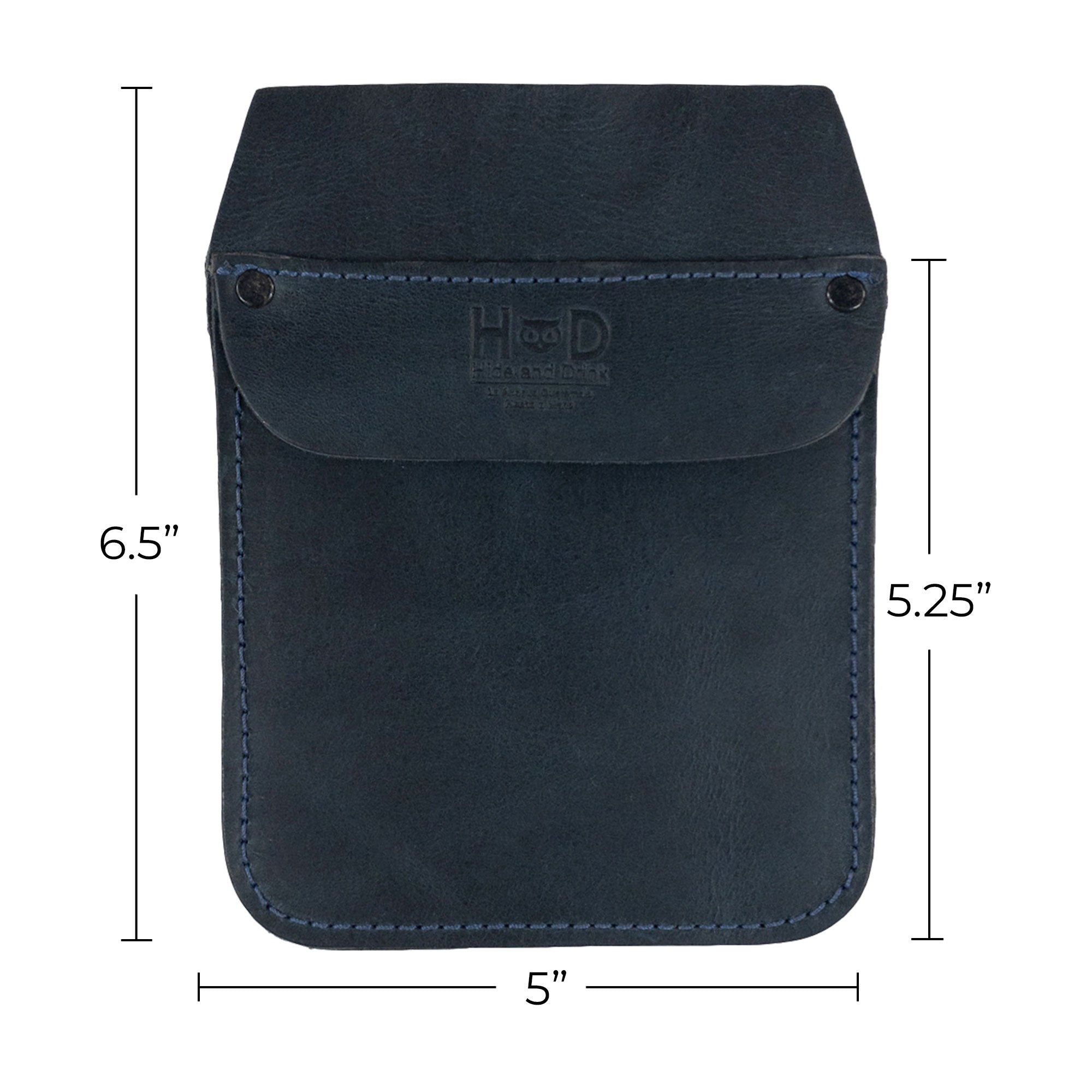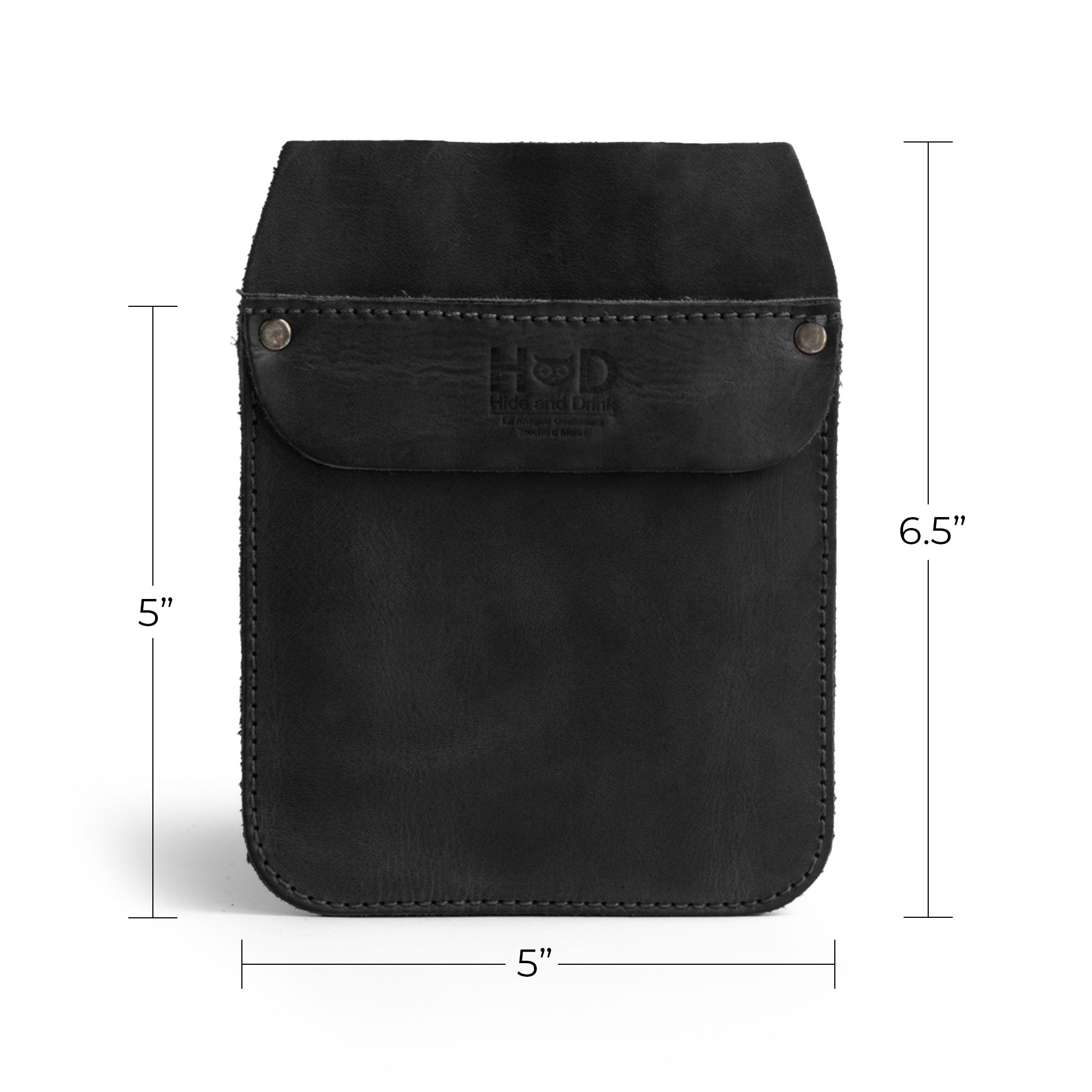 Showcasing the Hide & Drink Leather Work Pocket's dimensions, perfect for storage solutions in a stylish format. An artisan product that combines functionality with aesthetics—ideal for carrying essentials on the go.