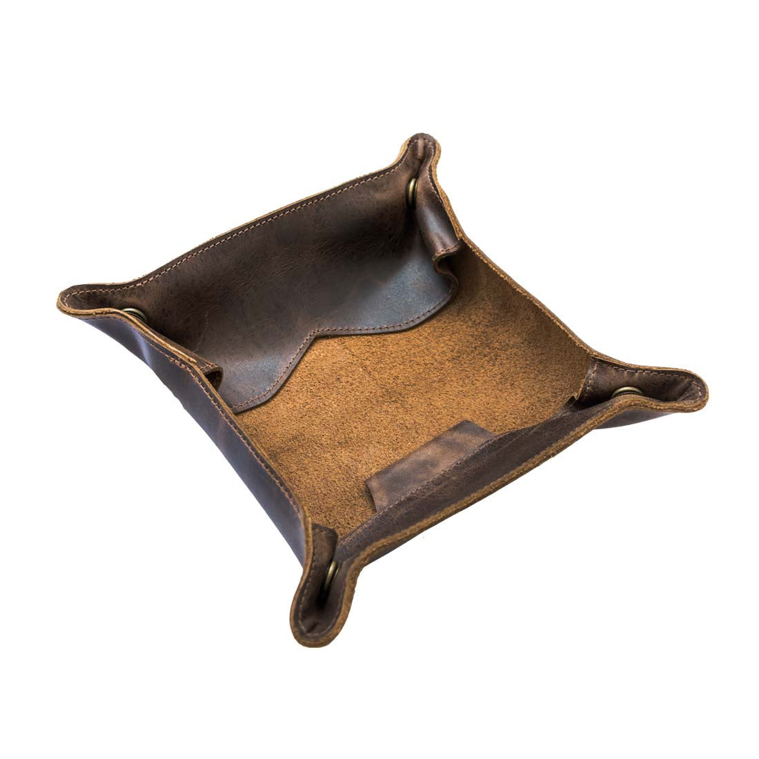 The flesh side of the soft leather is first stained with natural drab tone and finished with our proprietary beeswax conditioner. Our unique treatment helps the tray to retain its shape without the aid of synthetic stabilizers.