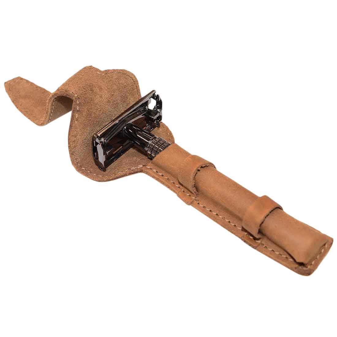 Safety and convenience are top priorities with the Edge Safety Razor Protective Case. Just slide your razor into the case, cover it securely with the double cover, and fasten through the leather loops. This means no more rummaging through your toiletries bag and risking accidental cuts from blade exposure. Store your razor with confidence knowing it’s safely tucked away. Perfect for travel or daily use, this case ensures your razor remains safe and sharp.