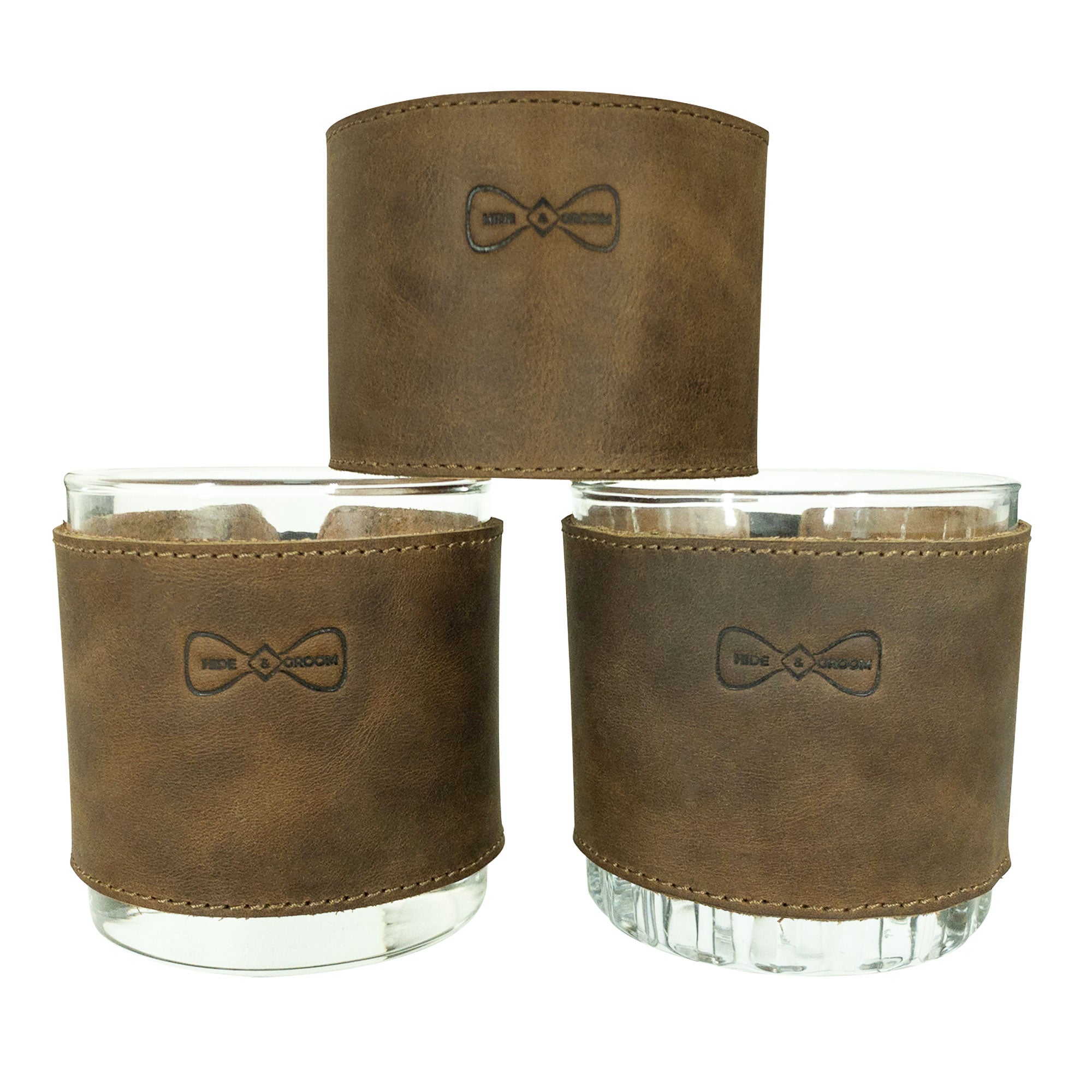 By choosing the Drinking Glass Covers for Groomsmen (Set of 3), you’re opting for sophistication and functionality. Experience the exquisite feel of full grain leather. It's the perfect touch for any occasion, making a lasting impression!