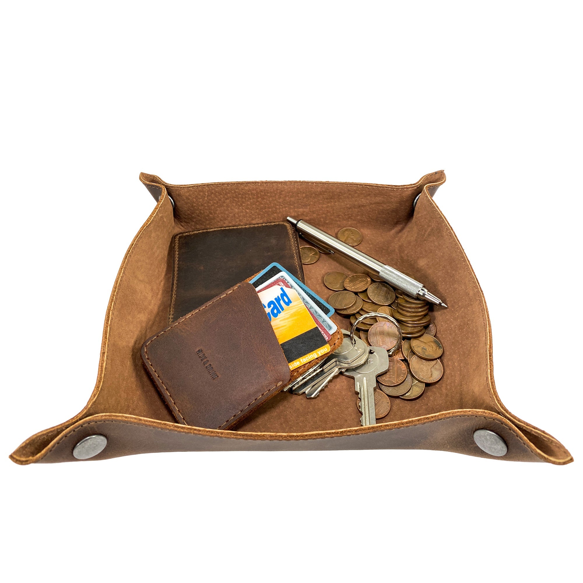 Over time and with use, the leather will assume a unique patina. If desired, condition with mineral oil or beeswax leather conditioner.