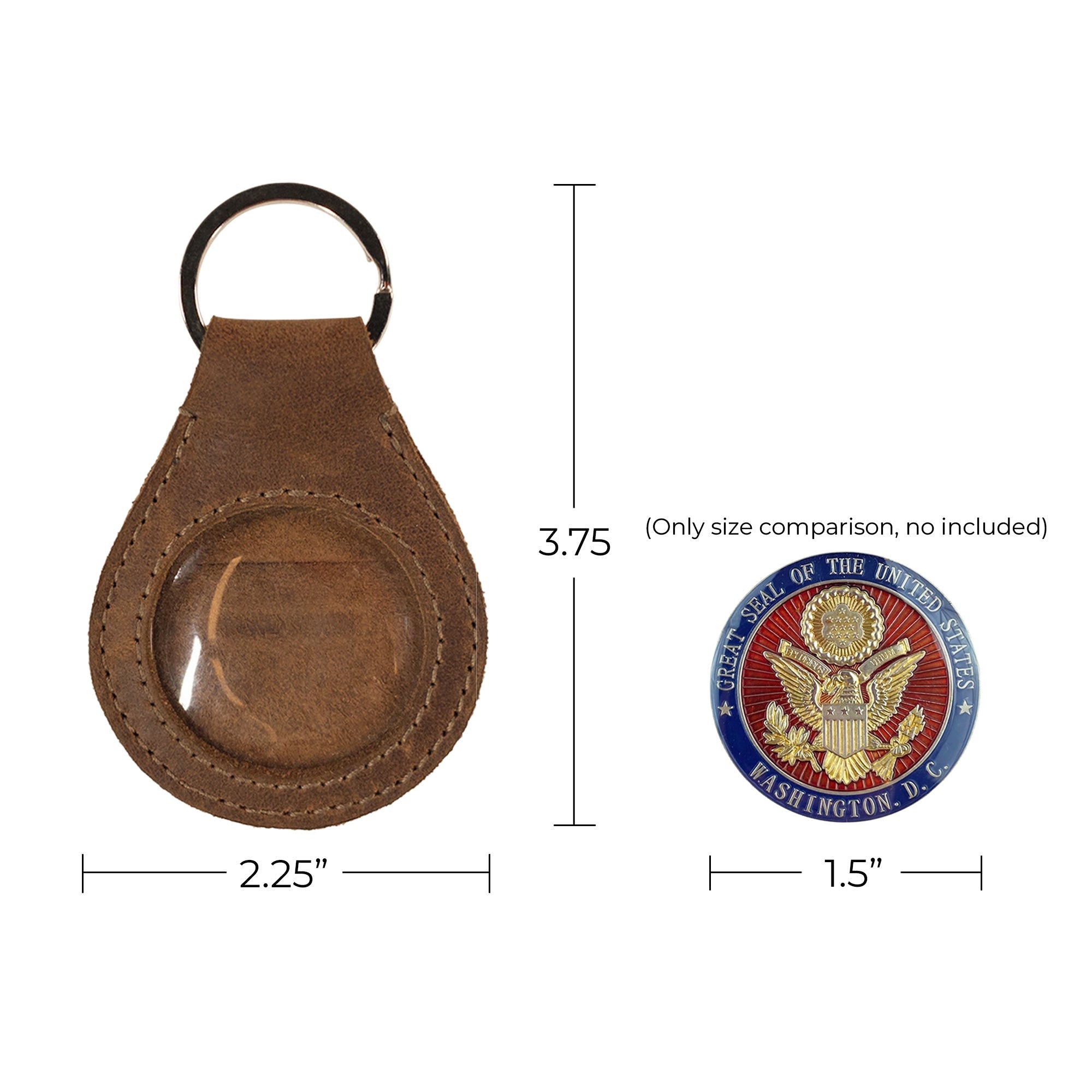 Discover the perfect blend of style and functionality with our Medallion Holder Keychain. Crafted from premium, durable full grain leather, this keychain offers a secure and stylish solution for storing your cherished memorabilia, keepsakes, and special coins. Designed with a robust keyring attachment, it keeps your keys secure and can easily attach to your favorite bag or serve as a decorative piece on your wall.