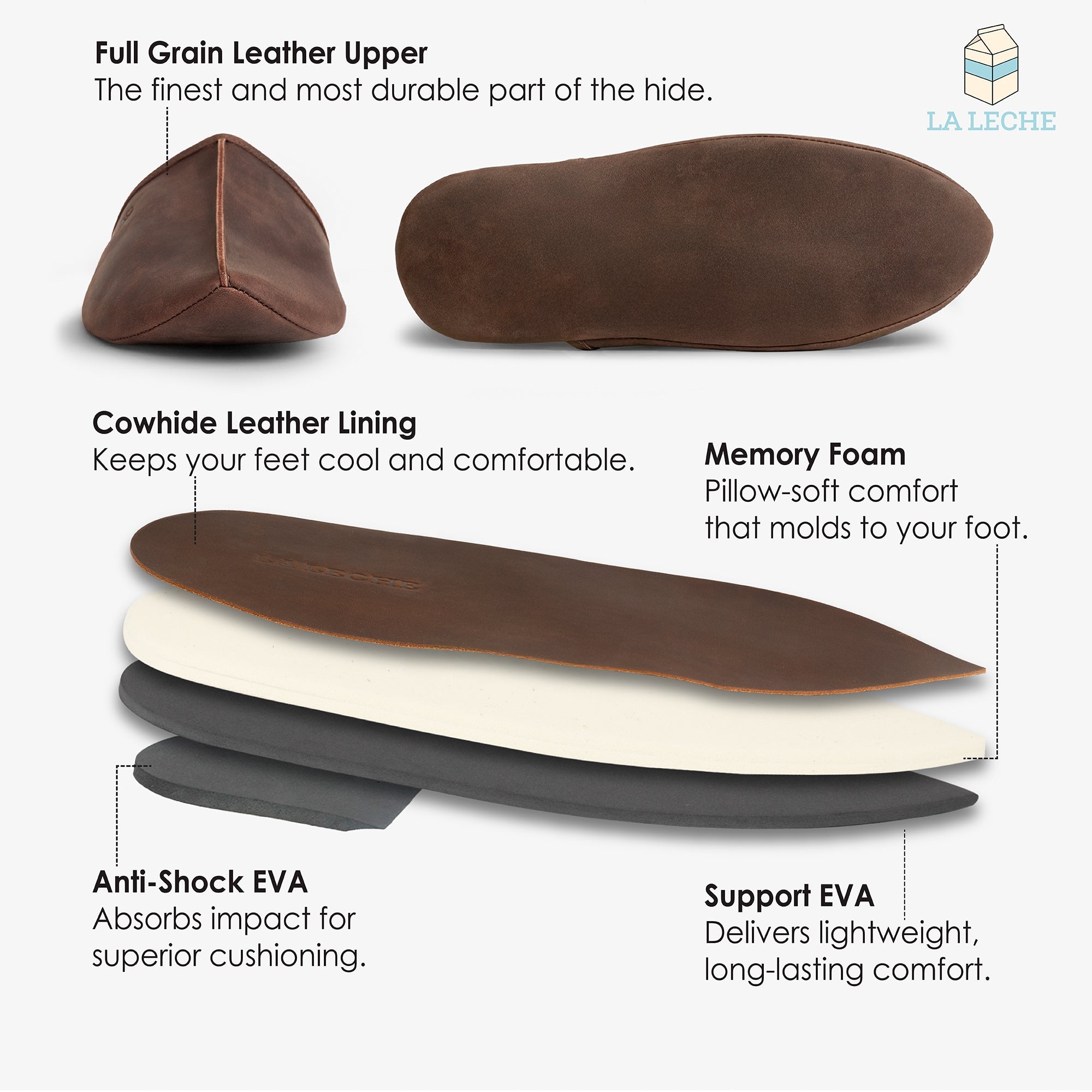 Full Grain Leather and Memory Foam