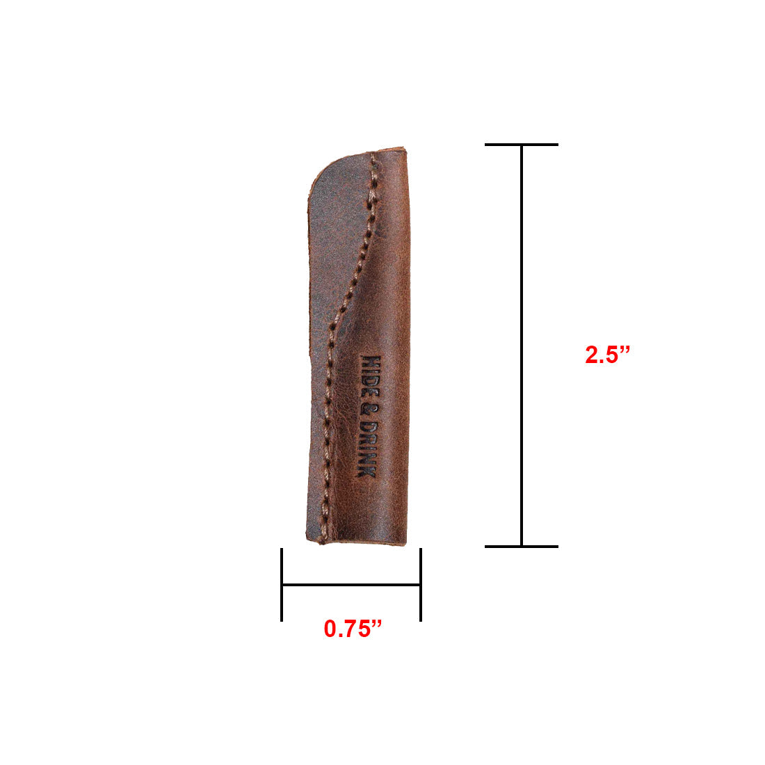 Product dimensions of Hide & Drink's Pencil Cap (6 Pack) indicated on a leather pencil cap, emphasizing its handmade quality and style. A perfect addition to your office essentials, crafted with care from full grain leather by artisans in Mexico.