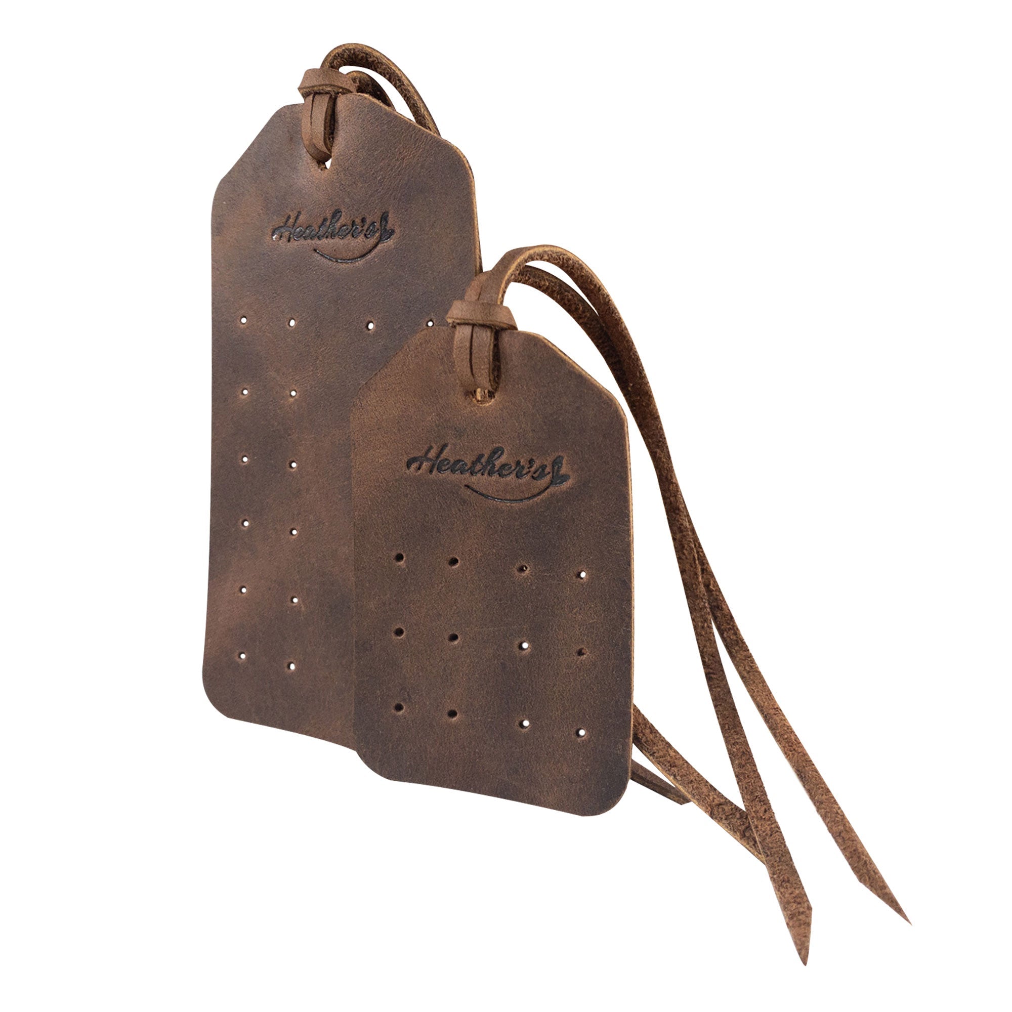 Treat yourself or gift them to a friend— our Set of 2 Earring Tags makes for a thoughtful and practical gift that will last a lifetime! Elevate your earring storage with these artisan-made, fire branded Full Grain Leather tags from Heather's. Embrace functionality and style in one elegant solution.