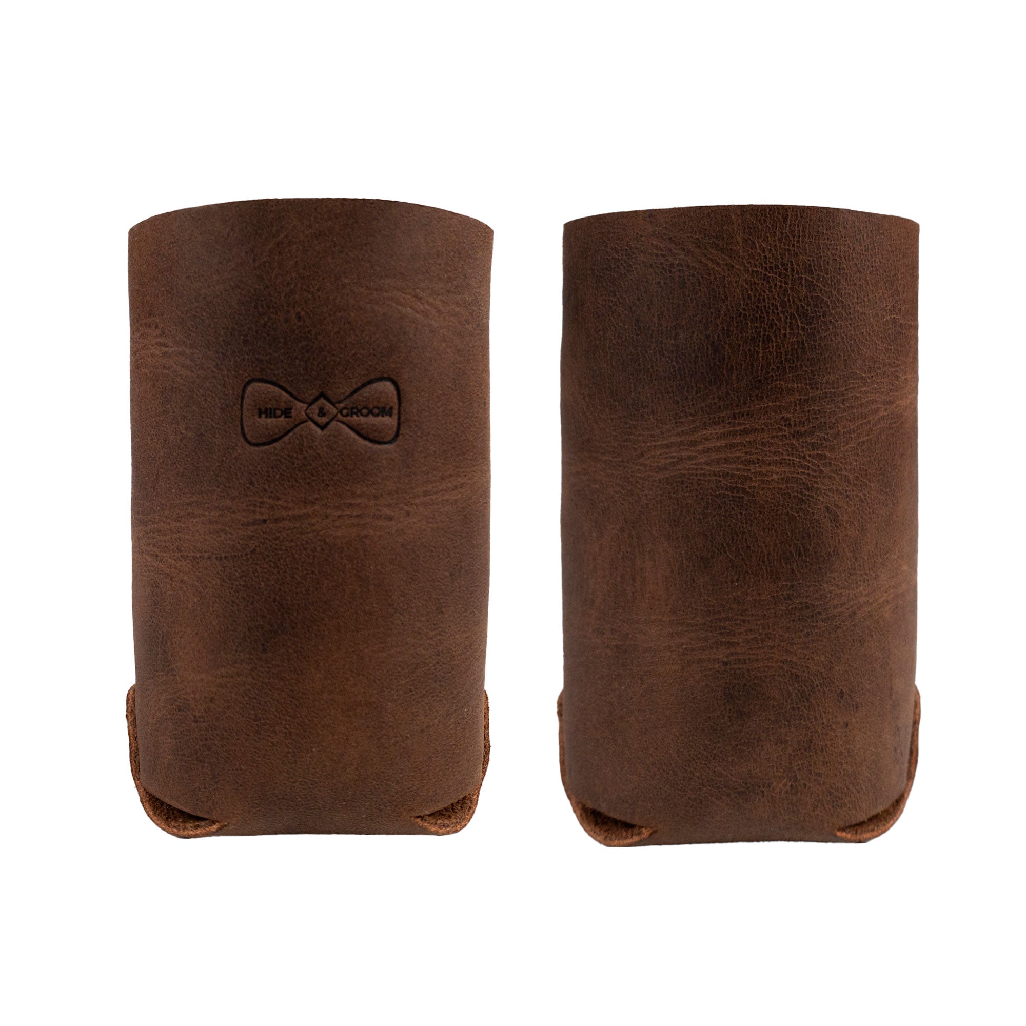 Each sleeve is made from premium full grain leather, sourced sustainably from Petén, Guatemala. This luxurious material not only boasts durability but also develops a unique patina over time, enhancing its character. Our small Beer Can Sleeves are collapsible and can effortlessly fit into your pocket or backpack, making them convenient for any adventure.
