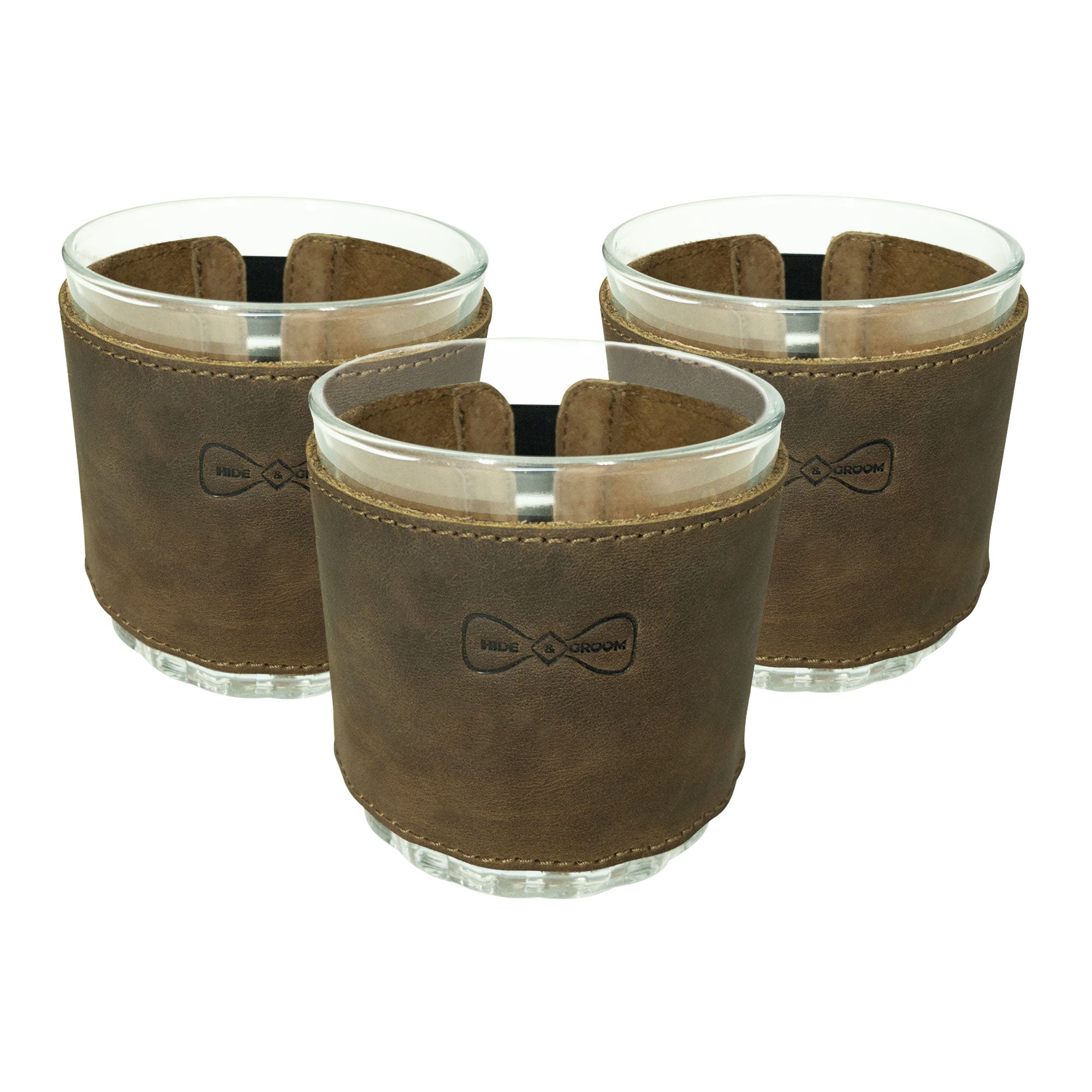 By choosing the Drinking Glass Covers for Groomsmen (Set of 3), you’re opting for sophistication and functionality. Experience the exquisite feel of full grain leather. It's the perfect touch for any occasion, making a lasting impression!